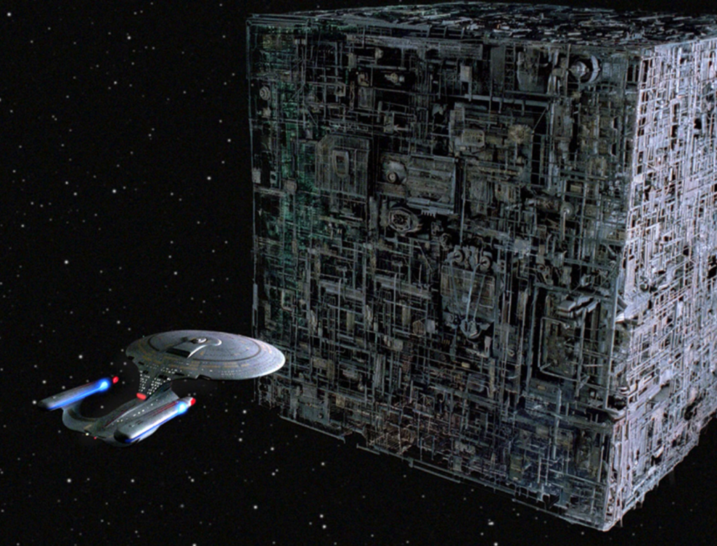 W filmie Star Trek istoty albo inteligencja Borg to Kolektyw (Hive Mind): inaczej władza absolutna nad myślami i wolą miliardów dronów. Brak indywidualności, to samo powstanie w momencie podłączenia milionów ludzi do AI-SI, nastąpi duchowa śmierć podłączonego człowieka, co opisuje, albo jak ostrzega Duch Świety. Zobaczcie kluczowy werset w tym temacie: „I dano mu, by duchem obdarzył obraz Bestii, tak iż nawet przemówił obraz Bestii i by sprawił, że wszyscy zostaną zabici, którzy nie oddadzą pokłonu obrazowi Bestii.” (Obj 13:15, BT) Każdy kto nie będzie chciał być zmieszany z AI-SI Borg NWO, jego „psyche” – zostanie zamordowany !