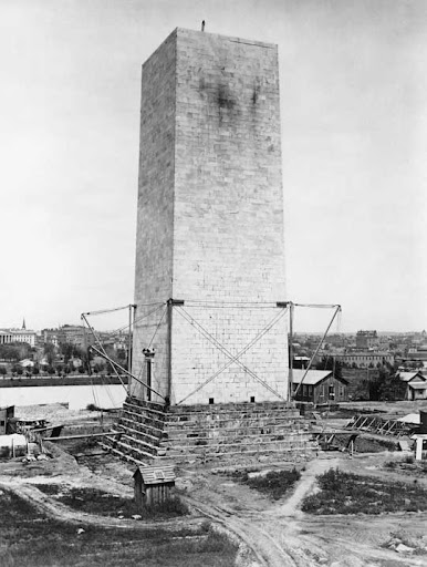 Pomnik naśladuje starożytne obeliski z Egiptu, takie jak te z Heliopolis czy Luksoru, które symbolizowały promienie słońca (tekhenu) lub wieczność cywilizacji. Kamień węgielny położono 4 lipca 1848 roku w masońskiej ceremonii, z udziałem masonów, w tym prezydenta Jamesa K. Polka. Wewnątrz kapsuły czasu z cynku umieszczono m.in. Konstytucję USA, Biblię i masońskie artefakty.