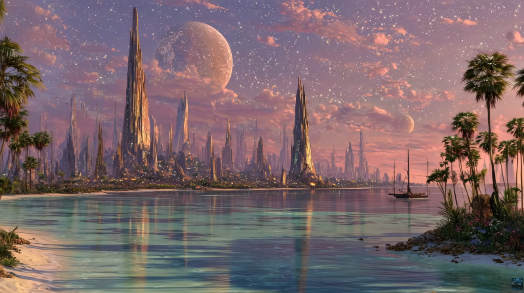 W całym tym tekście, w większości objętości, zaprezentowaliśmy przykładowe obrazy ze światów wyższych, anielskich. Pochodzą z kanału muzycznego „ambient” o nazwie „VIATMOS„. Są to produkcje muzyczne relaksujące, wprowadzające w dobry nastrój, jednocześnie w większości artystycznej twórcy, pokazują światy pozytywne, piękne, do których wielu z nas pragnie się dostać, w tym kosmiczno starożytne. Są to obrazy które stoją w sprzeczności z ciemnością produkcji iluminacko satanistycznych hollywood’u, gdzie obserwujemy straszliwe wizje loży wolnomurarskich łączenia się ludzkiej natury z cyborgami, z Borgami, z Obcymi, z demonami, genetycznych i duchowych frankensztajnów, przed czym przestrzegają rabini typu Szneur Zalman !