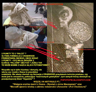 Można by poprzestać na tym i uznać wszystko co pokazał Maussan za fałszerstwo, ale proszę przeczytać kluczowe zdanie, wypowiedziane dalej przez cytowanego tu Radolfo Salasa, wysokiej klasy specjalistę, i dodajmy to bardzo mocno – EWOLUCJONISTĘ ! Oto ono: „Fakt, że ta mumia ma tylko trzy palce i kości, które wyglądają dokładnie tak jak u człowieka, który ma pięć palców, nie ma ewolucyjnego sensu.” (Jeśli są ludzko obcymi hybrydami to z czego miały by być utworzone, jeśli nie z ludzko-obcych paliczków, kości i tkanek ?!) ! Jest to silne ewolucjonistycznie uwarunkowane spojrzenie na zagadkę z Nazca. Badania czegoś co wykracza poza sferę Ziemi z punktu widzenia ewolucji nie mają zbytniego sensu. Ewolucja jest WIARĄ, teorią której nie da się naukowo udowodnić ! Punkt widzenia ewolucjonistów, to wizja paranaukowa, zabawiona ułudą „inteligentnej” materii, która jest w gruncie rzeczy energią, jak dowodzą tego mechanicy kwantowi. Musimy jednak analizować wszystkie dostępne dane.